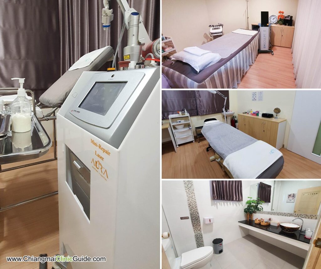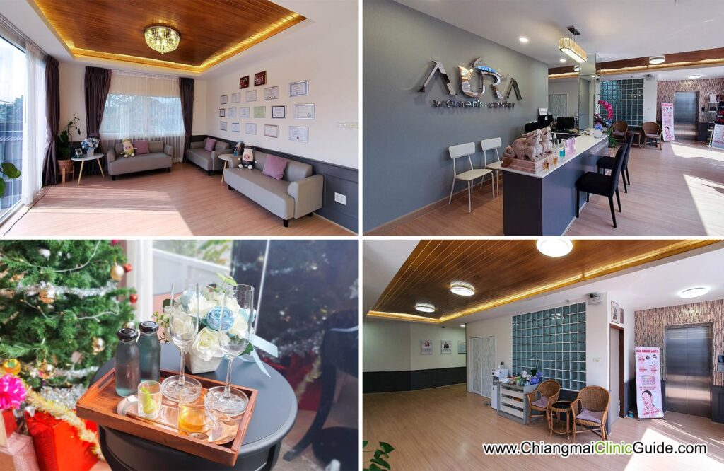 Aura Clinic Chiang Mai ถือได้ว่าเป็นอีกหนึ่งคลินิกที่หรูหราด้วยอาคาร 3 ชั้น มีกำแพงน้ำตกขนาดใหญ่เป็นฉากด้านข้าง บรรยากาศภายในกว้างขวางตกแต่งระดับ VIP เพราะคุณหมออยากให้ผู้เข้ารับบริการรู้สึกว่าเป็นคนสำคัญ แต่อัตราค่าบริการมาตรฐานทั่วไป จับต้องได้ ไม่แพงอย่างที่คิด สะดวกสบาย พนักงานคุณภาพ ยินดีต้อนรับให้คำปรึกษา