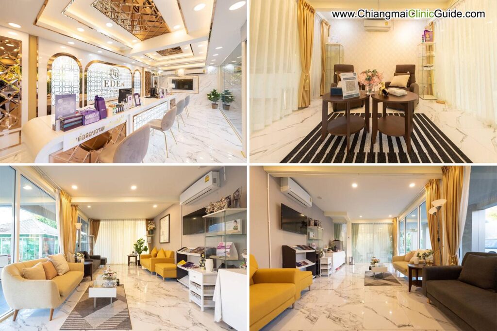 อีเดน สหคลินิก เชียงใหม่ (E-DEn Clinic) ตั้งอยู่ในซอยข้างแสงชัยมอเตอร์เซลล์ ใกล้กับเซ็นทรัลแอร์พอร์ต เชียงใหม่ หาไม่ยาก บรรยากาศเรียบง่าย สะอาด แวะเวียนเข้าไปสอบถามบริการกันก่อนได้ มีพนักงานคอยให้ข้อมูลอย่างเป็นกันเอง