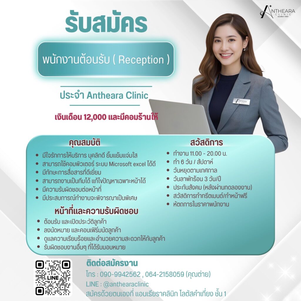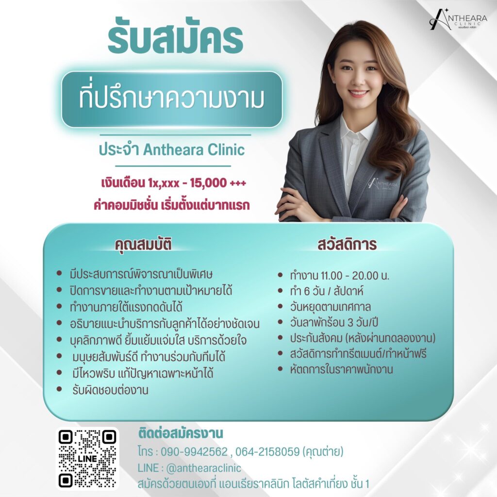 รับสมัครพนักงาน แอนเธียรา คลินิก โลตัส-คำเที่ยง เชียงใหม่ หลายตำแหน่ง