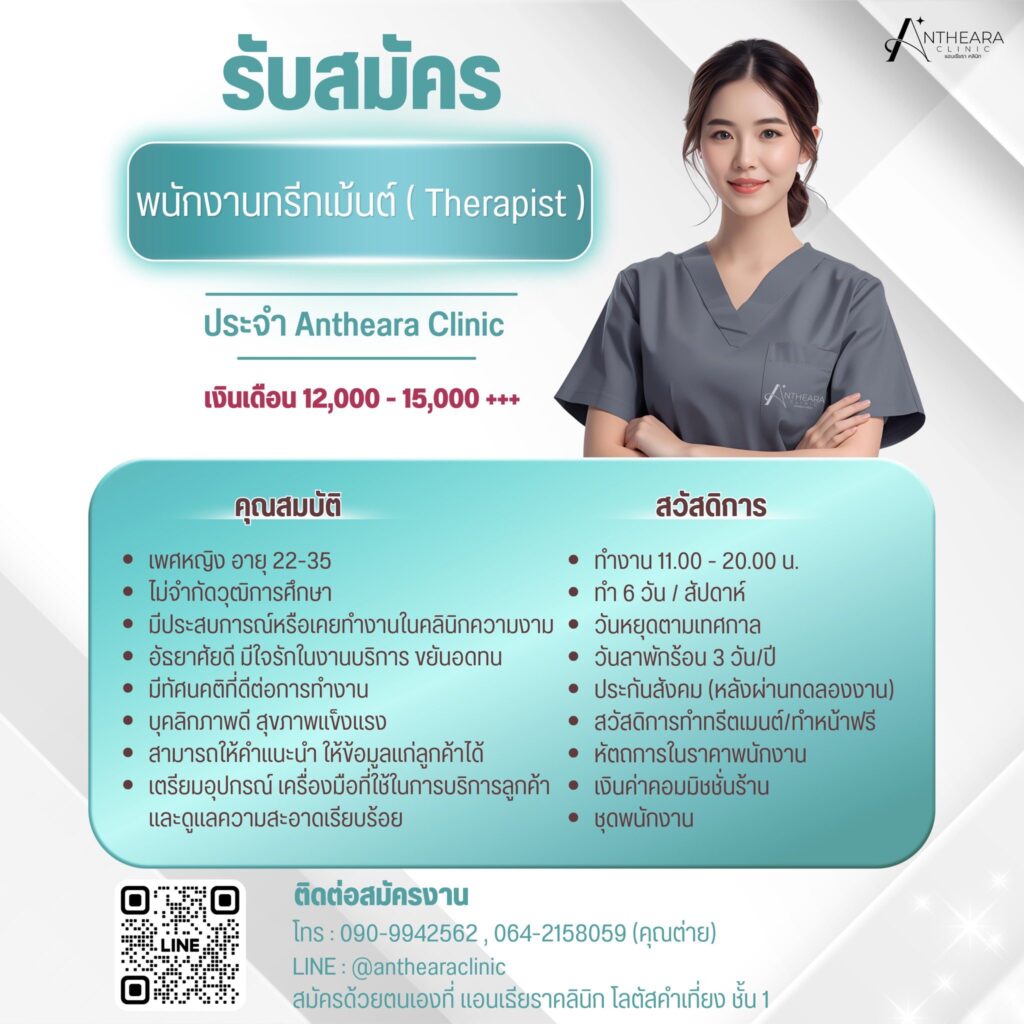 รับสมัครพนักงานทรีทเม้นต์ (Therapist) ประจำคลินิกความงามเชียงใหม่