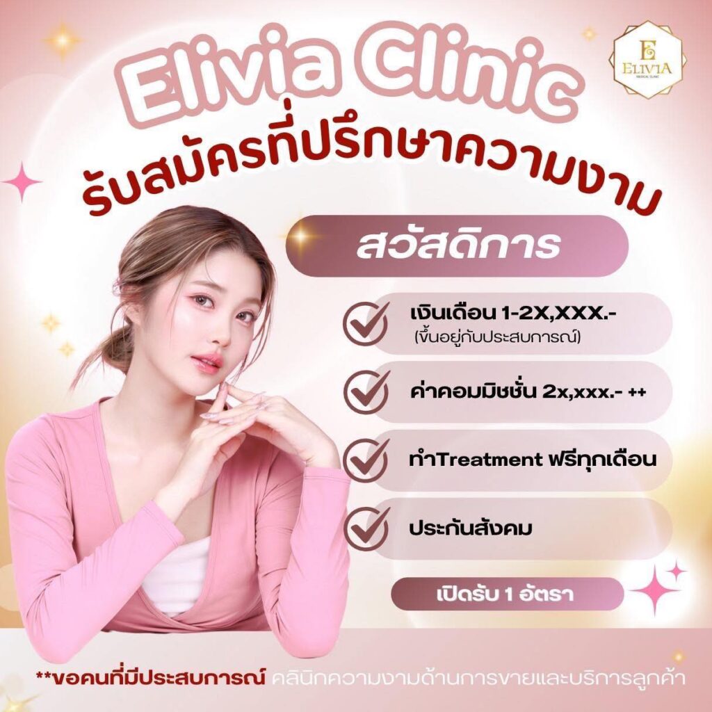 รับสมัครพนักงานที่ อิลิเวีย คลินิก สาขาเชียงใหม่ตำแหน่งที่ปรึกษาความงาม 1 ตำแหน่ง