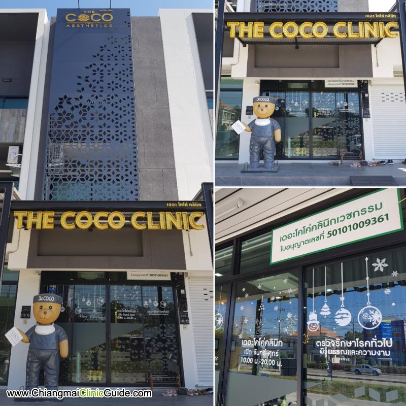 The CoCo Clinic (เดอะโคโค่คลินิก เชียงใหม่) ตั้งอยู่ที่โครงการมาลาดา เมซ ถนนเส้นหางดงถ้ามาจากเซ็ลทรัลแอร์พอร์ทเชียงใหม่ เลยสี่แยกสะเมิงประมาณ 900 เมตร อยู่ทางฝั่งซ้ายมือ คลินิกสไตล์สีดำทองเป็นตึงแถวตั้งอยู่หน้าโครงการโครงการมาลาดา เมซ เห็นชัดเจน ที่จอดรถหน้าคลินิกสะดวกสบาย